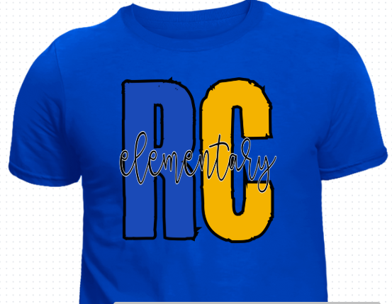 Make a bold statement with this rugged royal blue and yellow distressed RC design, complete with Elementary across the front. Printed on a comfy sport gray shirt, this tee brings school pride with a tough, standout look.